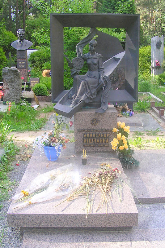 Пройдемся по белорусским писателям, которые почти все покоятся здесь. Только Янка Купала и Якуб Колас похоронены на военном кладбище в центре Минска, а Максим Богданович в Ялте. Конечно, надгробия всех классиков белорусской литературы я не фотографировал, а только те, которые мне чем-то понравились.