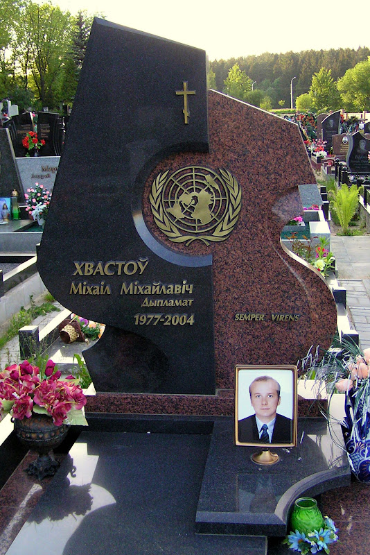 Могила дипломата. В комментариях добавили, что это сын министра иностранных дел Беларуси и чрезвычайного и полномочного посла Республики Беларусь в Соединенных Штатах Америки и в Мексиканских Соединенных Штатах по совместительству, Хвостова Михаила Михайловича.