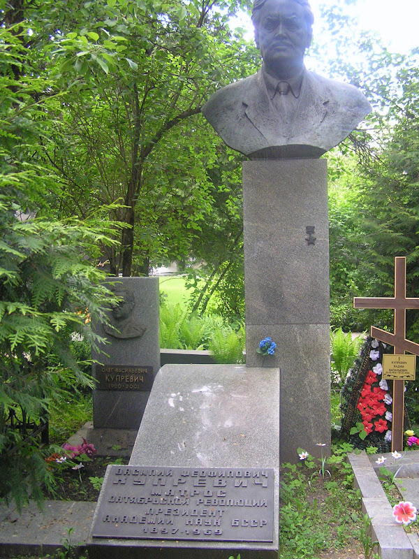 И завершает список «знаменитостей» некто Василий Феофилович Купревич. Заслуживает внимания тот факт, что сначала на надгробие написано «матрос октябрьской революции» и только потом «президент академии наук БССР». Вот такие жизненные итоги.