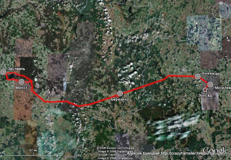Как всегда, благодаря GPS и Google Earth я могу вам показать точный маршрут (начало в Заславле, конец там же, первая остановка на маршруте - Березино, последняя - Могилев):