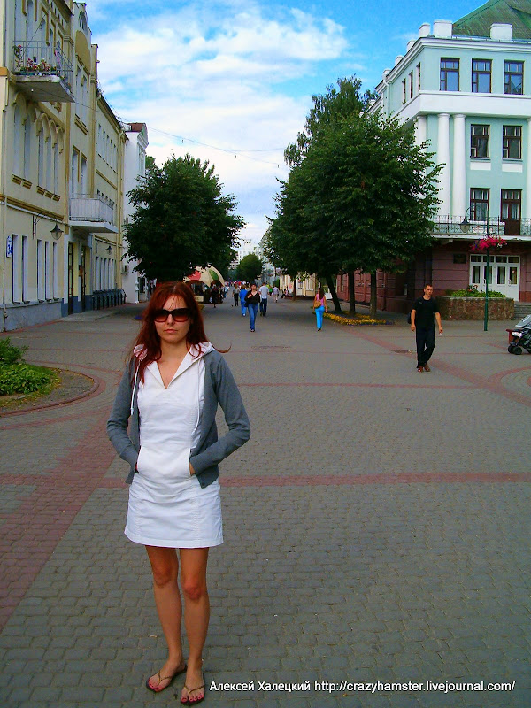 Все-таки пешеходная улица в большом городе очень важна! В Могилеве такая улица есть, на ней много кафешек и всяких интересных мест. Это Оля стоит в начале пешеходной улицы, за спиной фотографа - площадь с предыдущей фотографии: