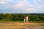 А это мы на площади Орджоникидзе. Точнее она за нашими спинами, а впереди - обрыв, Днепр и новые микрорайоны Могилева. Я сказал Андрею, чтобы он просто куда-нибудь показывал пальцем. Вот он и показывает: